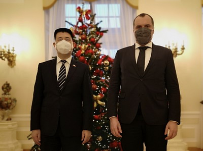 2021年12月16日,驻波兰大使孙霖江会见波总统府国务秘书、国际政策局局长库莫赫。
