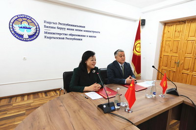2021年12月16日,驻吉尔吉斯斯坦大使杜德文同吉教育和科学部部长库别舍夫共同出席使馆援吉15所中小学家具和教学设备交接仪式并签署交接证书。吉前副总理巴卡绍娃及15所受援中小学负责人等参加。