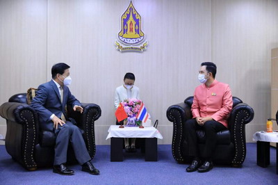 2021年12月18日,驻泰国大使韩志强拜会泰国文化部长易提蓬。