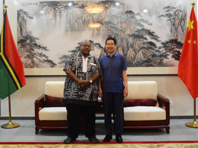 2022年1月7日,驻瓦努阿图大使周海成会见瓦基础设施与公共事业部长尼威利,双方就深化基础设施建设合作和经济社会发展等交换意见。