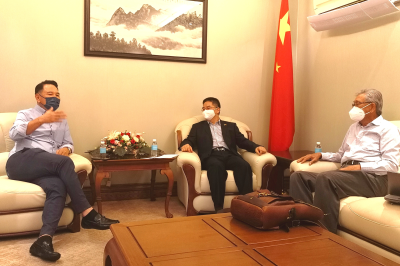 2022年1月11日,驻哥打基纳巴卢总领事梁才德在总领馆会见沙巴州政府经济咨询理事会主席朱瑞强和理事罗道华。