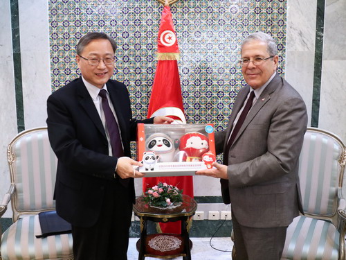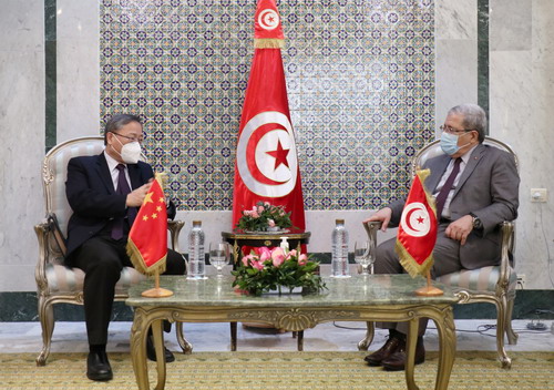 2022年2月21日,驻突尼斯大使张建国会见突尼斯外交部长杰兰迪,双方就中突关系及中非、中阿合作交换意见。