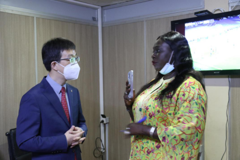 会见后,蒋烽大使接受尼矿业部新闻官采访。
