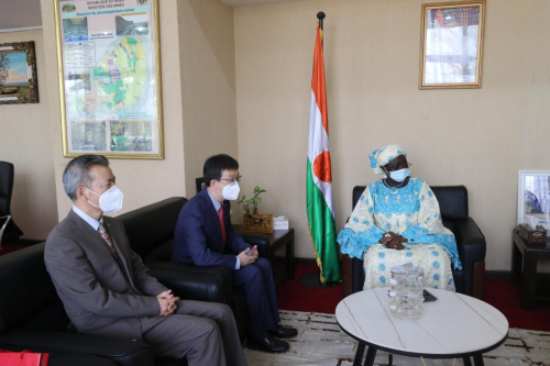 2022年3月22日,驻尼日尔大使蒋烽会见尼矿业部长乌赛尼女士,双方主要就中尼友好合作关系交换了看法。
