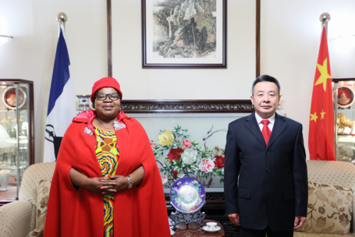2022年4月19日,驻莱索托大使雷克中在官邸会见莱索托外交大臣拉马科阿,双方就落实中非合作论坛第八届部长级会议成果、进一步深化中莱关系等交换了意见。