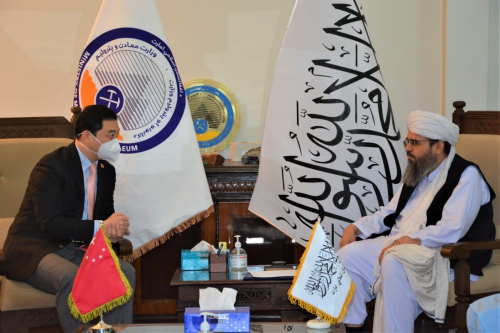 2022年4月20日,驻阿富汗使馆临时代办丁一男会见阿富汗临时政府矿业和石油部代理部长迪拉瓦尔。