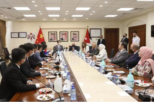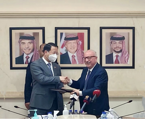2022年5月25日,驻约旦大使陈传东出席中国援建的萨尔特公路升级改造项目实施协议签署仪式。约旦公共工程和住房事务大臣叶海亚·卡斯比等约旦政府有关部门官员、中标承建该项目的中约企业联合体代表、使馆经商处有关人员等参加。