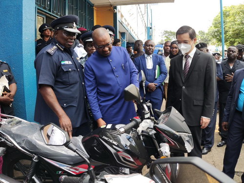 2022年6月14日,驻塞拉利昂大使胡张良代表使馆向塞警察总部捐赠数辆摩托车,以助其改善在偏远地区执勤的交通条件。塞副总统贾洛、警察总监索乌拉及警察总部高级官员等出席。