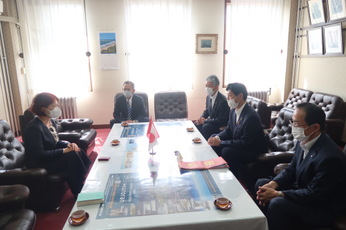 2022年7月29日,驻札幌总领事刘亚明访问室兰市并拜会室兰市长青山刚。室兰市议长儿玉智明等在座。