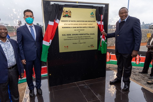 2022年7月31日和8月1日,驻肯尼亚大使周平剑与肯尼亚总统肯雅塔共同出席内罗毕东环城路拓宽、内罗毕快速路、卡努曼纽二大坝供水等中肯合作项目建成交用仪式,肯尼亚交通部长马查里亚、公共服务部长科比亚、水资源常务副部长恩乔若格等参加。肯雅塔总统和周大使在内罗毕快速路开通仪式上分别致辞。