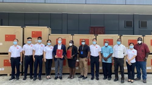 2022年8月24日,驻所罗门群岛大使李明代表驻所罗门群岛使馆向所罗门群岛卫生部及国家转诊医院捐赠医疗物资,所卫生部常秘麦克尼尔、国立医院院长、中国援所医疗队全体成员等出席交接仪式。