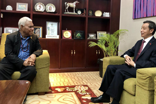 2022年8月31日,驻瓦努阿图大使李名刚到任拜会瓦看守总理拉夫曼。