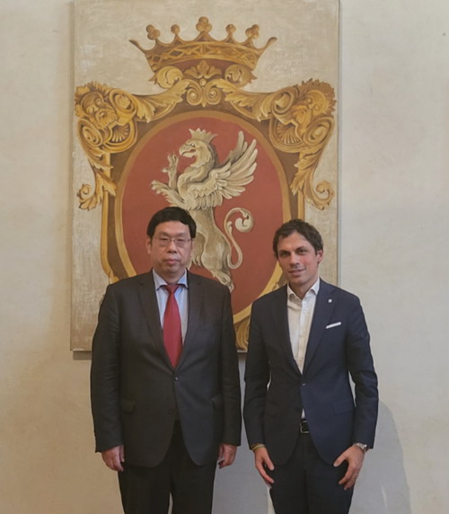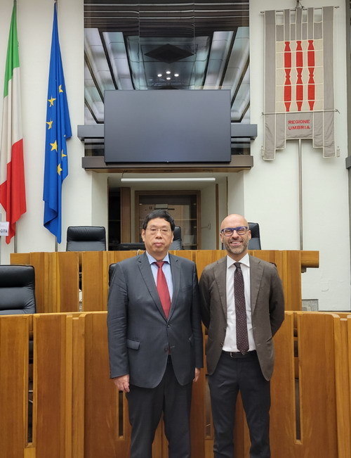 王总领事表示,翁布里亚大区物华天宝,人杰地灵,文化、艺术、旅游资源丰富,各领域对华合作基础牢固,成果显著。佩鲁贾市拥有佩鲁贾外国人大学、佩鲁贾音乐学院等多所知名高等学府,每年吸引大量中国学生前来学习。当地曾举办“中国日”等系列双边文化交流活动,在促进民心相通、深化中意友谊方面起到重要作用。新冠肺炎疫情发生后,大区更是同中国积极开展抗疫国际合作,通过互捐物资等方式守望相助,共克时艰。