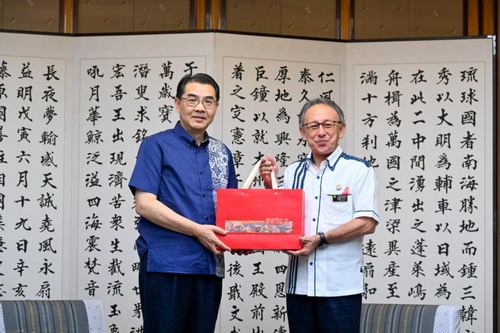 玉城知事表示,琉球从古至今始终同中国保持良好关系,“闽人三十六姓”为琉球发展发挥重要作用。今后冲绳将继续秉持“万国津梁”的思想,全方位开展“地域外交”,成为沟通地区各方的桥梁。欢迎更多中国民众到访冲绳,期待同中国加强各领域交流合作,增进民心相通,深化理解互信,构建和平、互惠关系。