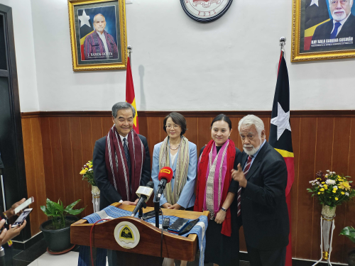 2023年12月4日,驻东帝汶大使王文丽陪同全国政协副主席、香港共享基金会主席梁振英会见东帝汶总理夏纳纳。双方主要就香港共享基金会与东帝汶开展公共卫生合作等议题交换意见。