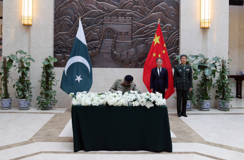 2024年3月29日,巴基斯坦参联会主席萨希尔上将前来中国使馆,吊唁在达苏水电站项目车队遭遇恐袭事件中遇难的中国公民。
