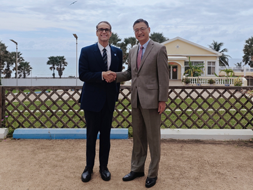 2024年7月15日,驻冈比亚大使刘晋会见联合国驻冈比亚协调员保罗。