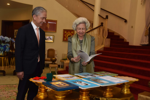 2024年7月25日,驻柬埔寨大使汪文斌到任拜会柬埔寨太后莫尼列。