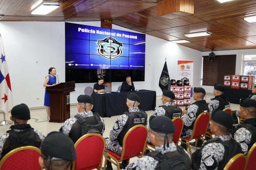 2024年11月14日,驻巴拿马大使徐学渊向巴国家警察总局摩托巡警队进行捐赠。巴国家警察总局局长费尔南德斯等出席。