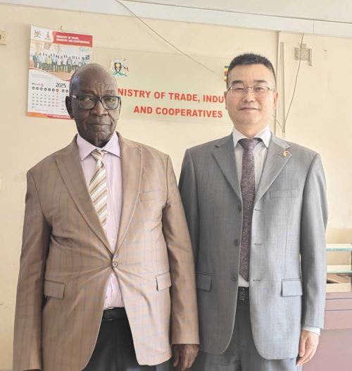 2025年4月11日,驻乌干达使馆临时代办范学成会见乌干达贸工部长姆韦贝萨,就进一步加强中乌双边经贸合作等进行交流。