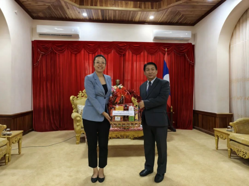 2025年4月11日,在老挝传统新年泼水节到来之际,驻琅勃拉邦代总领事张赫群拜会琅勃拉邦省委常委、副省长本倰,致以节日祝贺。