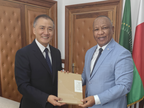 2025年4月17日,驻马达加斯加大使季平拜会马达加斯加总理恩蔡,就双方共同关心的话题交换意见。