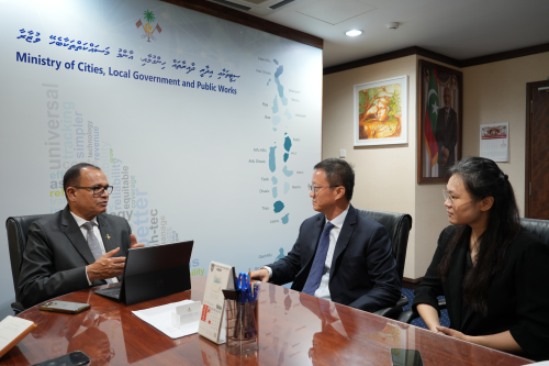 2025年5月18日,驻马尔代夫大使孔宪华拜会马地方治理部长沙里夫。