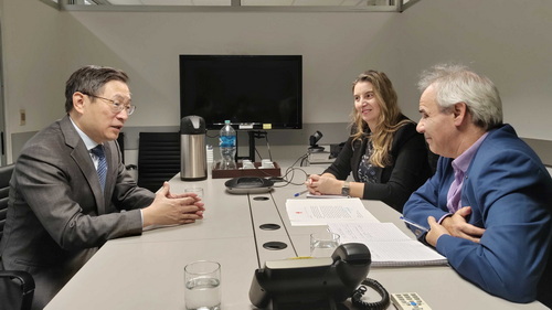 2025年5月16日,驻乌拉圭大使黄亚中会见乌新任外交部领事司司长穆伊尼奥,双方就推动和便利两国人员交往、加强领事合作等交换意见。