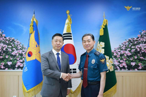 金厅长表示,济州警察厅愿与中国总领馆加强交流合作,增进理解互信,切实保障好在济中国公民的安全和合法权益,共同打造“安全济州”。