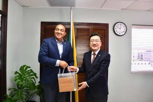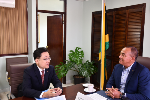 2025年10月15日,驻牙买加大使王锦峰拜会牙卫生和健康部长塔夫顿。