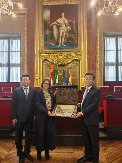 2025年10月15日,驻米兰总领事刘侃陪同沈阳市长吕志成一行访问都灵,期间会见都灵市副市长法瓦罗。