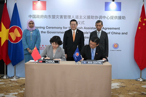 驻东盟大使侯艳琪代表中国政府同东盟灾害管理人道主义援助协调中心签署援助协议