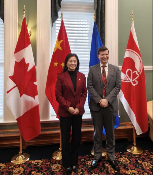 2026年1月22日,驻卡尔加里总领事赵丽莹会见卡尔加里市市长法卡斯,双方就加强地方交流合作交换意见。
