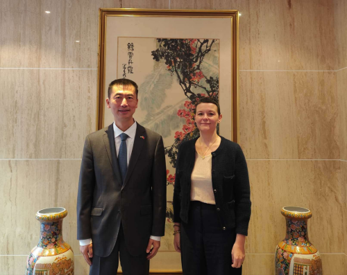 2026年3月30日,驻约旦大使郭伟会见联合国人道主义事务协调办公室(OCHA)驻中东北非地区代表塞维琳·雷。