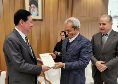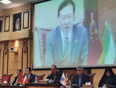 2019年12月10日,驻伊朗大使常华参访伊工矿农业总商会并发表演讲。