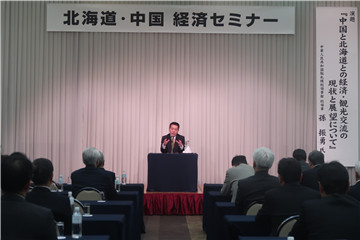 2019年12月18日,驻札幌总领事孙振勇在北海道·中国经济论坛发表题为“中日经贸与观光交流的现状与展望”的演讲。北海道日中经济友好协会会长木村辉美等日本企业家代表及北海道各界代表参加演讲会。