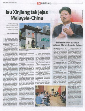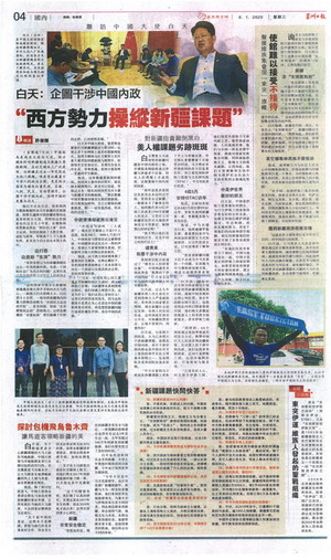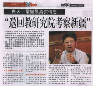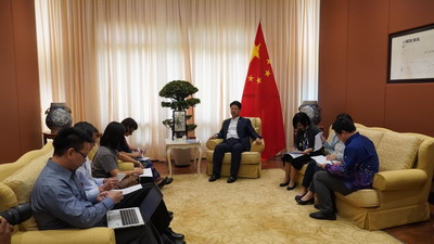 2020年1月6日,驻马来西亚大使白天接受马来西亚国家新闻社、中文报《星洲日报》、英文报《星报》和马来文报《阳光日报》联合采访,就新疆问题同记者们进行深入沟通和交流。