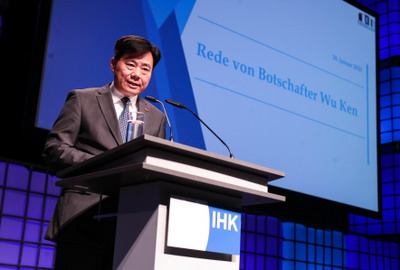 2020年1月16日,驻德国大使吴恳应邀出席巴登-符腾堡州黑森林地区工商会(IHK Schwarzwald-Baar-Heuberg)2020年春季大会并发表主旨演讲。