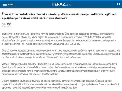 2020年3月6日,驻斯洛伐克大使孙立杰接受斯通社采访,应询介绍中国防控新冠肺炎疫情进展和推进经济社会发展情况。3月12日,斯通社发表题为《中国采取落实分区分级精准复工复产,全面强化稳就业举措》的通讯稿。