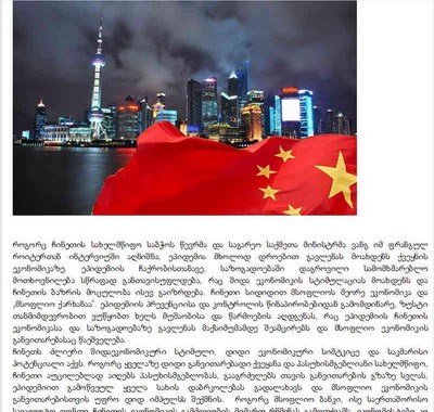 2020年3月13日,驻格鲁吉亚大使李岩接受“格鲁吉亚时代”通讯社书面专访,介绍中国抗击新冠肺炎疫情有关进展和秉持构建人类命运共同体理念积极开展抗击疫情国际合作情况。