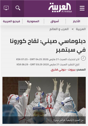 2020年3月21日,驻黎巴嫩大使王克俭接受阿拉比亚网专访,介绍抗击新冠肺炎疫情的防控工作和国际合作等相关情况。