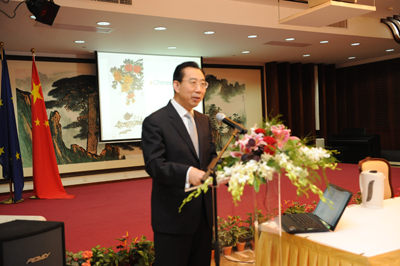 驻欧盟使团团长吴海龙大使率领使团外交官欢迎欧方来宾,他首先发表了热情洋溢的讲话。吴大使表示,2012年对于中国、欧盟和中欧关系都是非常不平凡的一年。中欧关系在这个背景下保持了良好的发展势头。今年上半年,中欧之间大事连连,尤其是高层往来特别频繁,这表明中欧双方都深刻认识到当前形势下加强与深化中欧全面战略伙伴关系的重要性和迫切性。吴大使指出,中欧关系的持续、稳定、健康发展不仅需要双方高层沟通与协调,还需要双方民间的往来和交流,更需要双方有识之士贡献聪明智慧、战略眼光和深刻思考。希望欧洲客人通过今天的机会,更多地接触中国文化,了解中国发展,在品茶之余各抒己见,畅所欲言,通过思想的碰撞和交流为深化中欧关系提出意见和建议。吴大使还表示,此次开放日特意安排在下午茶时间,希望大家度过一个轻松愉快的下午。中国外交官将为大家讲解并演示中国茶艺,让大家更直观地了解、感受中国文化。他还邀请大家品尝中国端午节的粽子,共同欢度佳节。