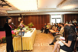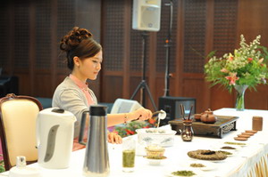 随后,两名中国青年女外交官进行了中国茶艺展示和讲解。她们介绍了中国茶的历史、文化、种类、茶道,饮茶的好处,中欧之间茶的交往等,并展示了不同种类的茶叶以及不同的饮茶方式。她们专业的表演赢得了观众热烈的掌声,不少人还高兴地应邀到台前品尝沏好的茶,还有人不停地做着笔记,记录下品味中国茶的道道程序。端午节临近,她们向来宾介绍了端午节的来历和有关风俗,并介绍到,使团的厨师特别准备了粽子让客人品尝,引起一片笑声。