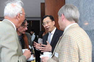 茶点之后,使团组织了中欧学者交流、中欧学生对话两个互动项目。使团设置了四个主题茶座,分别对应外交、经济、人文、创新等四个议题。学者们或选择了自己感兴趣的议题,或在不同茶座之间自由流动,与中国外交官展开热烈的讨论。吴大使被多位资深学者围住,攀谈良久,交流彼此对欧洲形势、中欧关系等问题的看法。