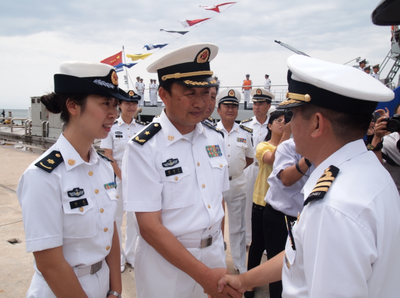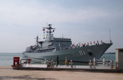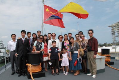 2012年9月11日上午10点,伴随着轰鸣的马达和汽笛声,中国海军“郑和”号训练舰徐徐驶入文莱摩拉港皇家海军基地。两军乐队凯歌高奏,八一旗帜猎猎招展,甲板和舰桥两侧,我海军将士昂首挺胸,军威雄壮。岸上数百名文莱皇家海军官兵、当地华人和中国驻文使馆工作人员拉着欢迎条幅、挥舞着中文两国国旗欢迎“郑和”舰的到来,仪式气氛热烈,场面隆重。