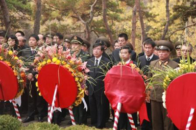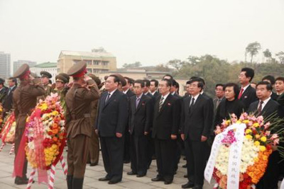 同日,中朝双方还向平壤兄弟山志愿军烈士墓敬献了花圈。