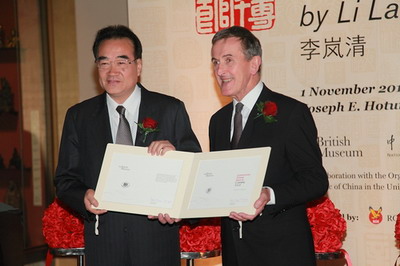 2012年11月1日,“中国印·李岚清篆刻书法艺术展”开幕式在英国伦敦大英博物馆隆重举行。第十届全国人大常务委员会副委员长成思危宣布艺术展开幕,中国驻英国大使刘晓明、文化部副部长赵少华、英政府亚洲关系小组主席鲍威尔勋爵分别致辞,中国国际贸易中心董事长廖晓淇代表李岚清先生向大英博物馆赠送14枚篆刻艺术作品。大英博物馆馆长麦克格瑞格,以及英教育、文化界人士,中资机构、华侨华人、留学生代表等100多人出席。