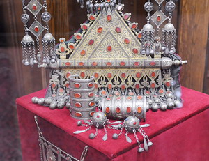 现在,土库曼首饰制品不仅在国内备受推崇,还多次参加中国、美国、澳大利亚、俄罗斯、乌克兰等国举办的各类艺术展,许多珠宝鉴赏家给予高度评价。土库曼银饰还为众多博物馆和珠宝爱好者所收藏,声名远播,成为土库曼民族的骄傲。