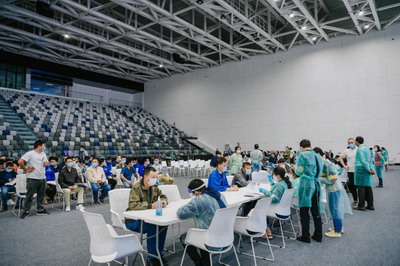 2021年6月8日一大早,体育中心大门外就排起了长队。“请大家检查一下有没有带护照和接种证书”“请按照序号进入大厅接种”,领保志愿者和体育中心的工作人员在现场入口处紧张地忙碌着。