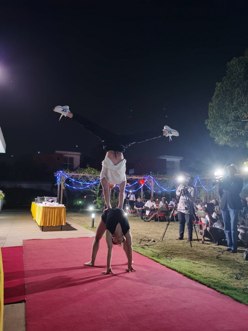 湖南省杂技团在贝宁首次亮相,给媒体之夜带来了精彩的口技表演和双人杂技。双人杂技演员在现场记者的闪光灯照亮下默契起舞,身姿翩翩;口技表演者模仿各类动物,时而鸟鸣声婉转,时而马蹄声阵阵,引起惊叹喝彩,掌声不断。对杂技团今后在贝宁舞台上的更多演出充满了期待。